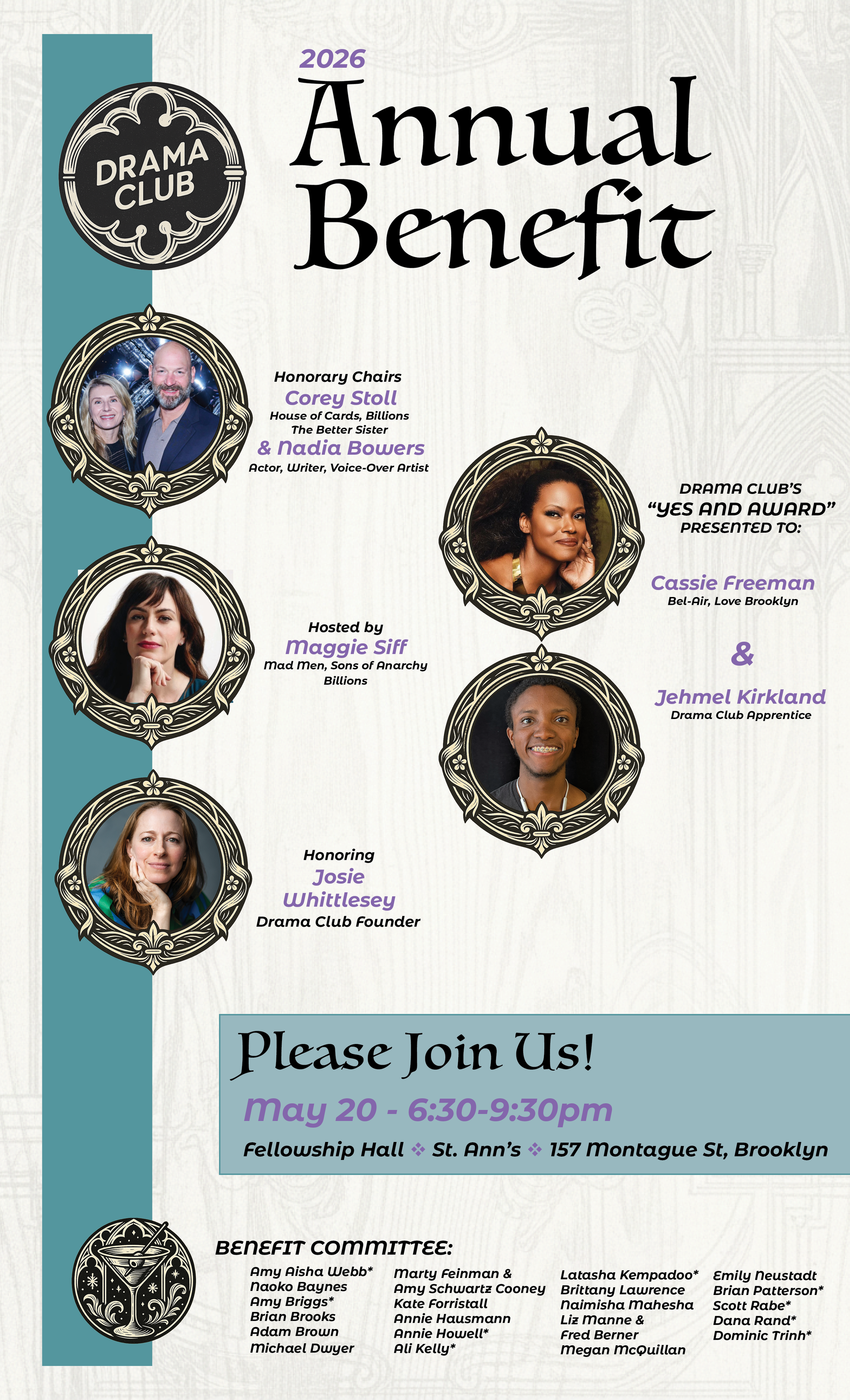 Drama Club’s Annual Benefit is not your typical sit-down dinner—it’s a lively, interactive evening designed to surprise and delight. Guests move through the space enjoying pop-up performances, playful games, and chances to win prizes, all while mingling and celebrating the power of creativity. This year we are pleased to announce we will be honoring Josie Whittlesey, Drama Club Founder.